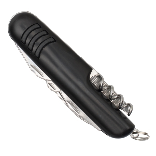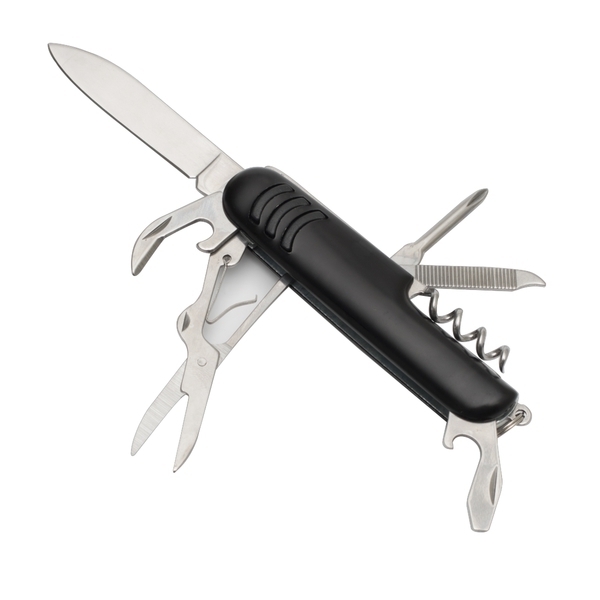 Zestaw składający się z 9-funkcyjnego scyzoryka z ostrzem ze stali nierdzewnej oraz latarki z karabińczykiem. Latarka zasilana jest 4 bateriami typu LR41 (dołączone). Zestaw zawiera nóż, wkrętak PH krzyżowy, pilnik, korkociąg, wkrętak płaski, otwieracz do butelek, nożyczki, otwieracz do konserw oraz oczko do troczenia. Pakowany w upominkowe opakowanie.